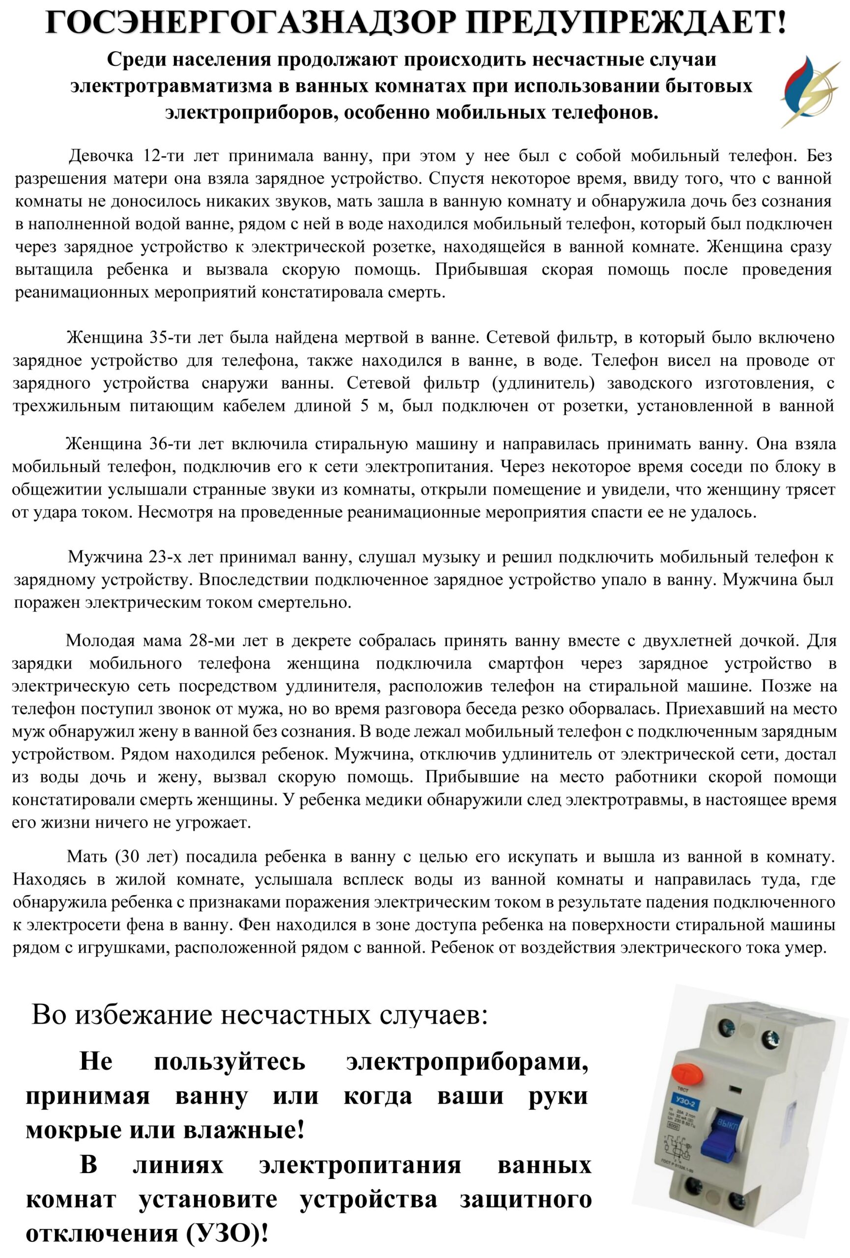 Помните, что причиной несчастных случаев являются, как правило, личная неосторожность и невнимательность самих пострадавших, незнание или пренебрежение простыми правилами электробезопасности.
