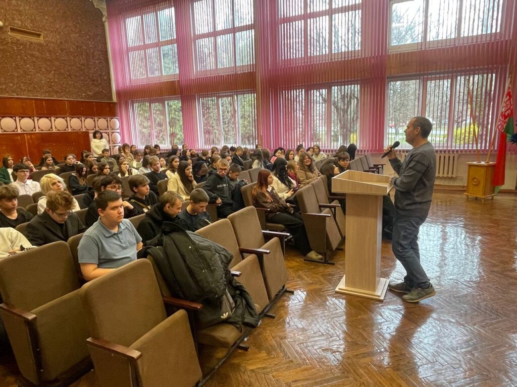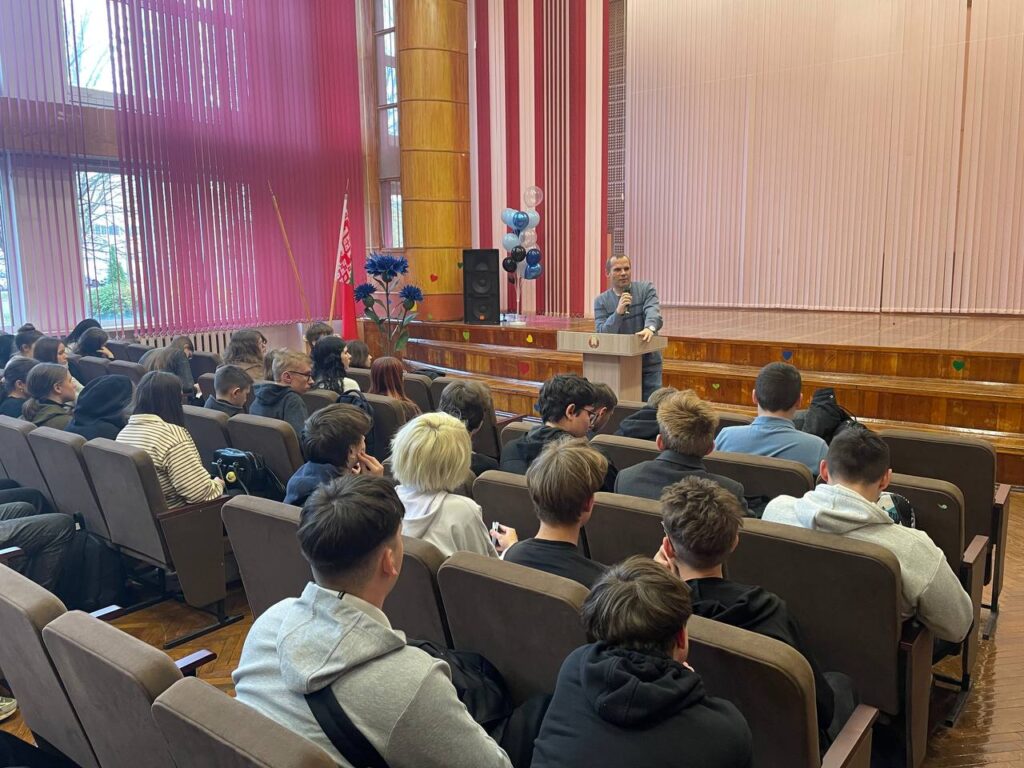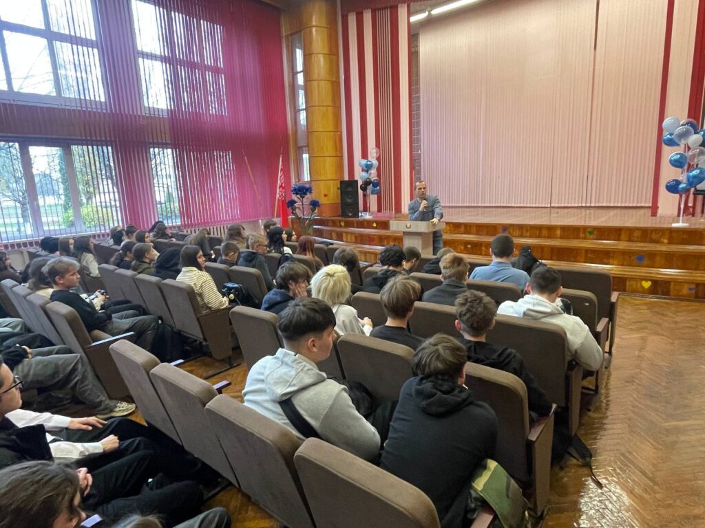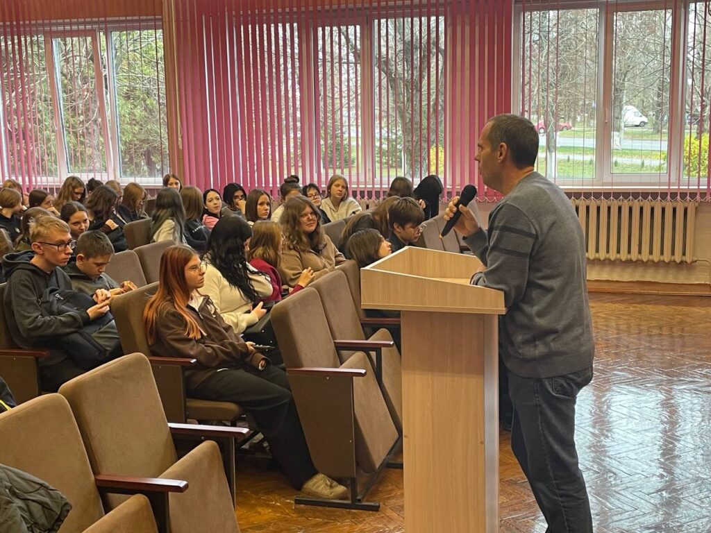 Встреча учащихся первого курса с Денисенко Павлом Владимировичем «Человеком года — 2024» в номинации «Лидер», руководителем поискового клуба «Алые погоны».